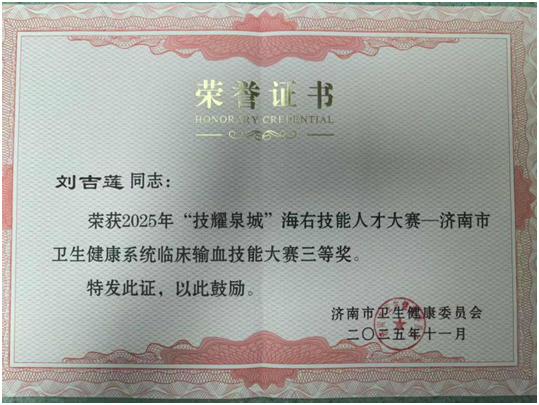 这张证书,不是终点的句点,是下一段征程的逗号。它印刻着赛场的汗水,更承载着临床一线的嘱托。往后的每一次标本接收、每一份报告出具,这份“技能认证”都会化作更稳的手、更细的心,让血液的“接力”,始终安全、温暖。