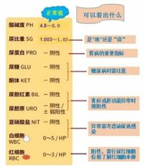 PH值(PH):正常范围是 4.6~8.0 。尿的酸碱度在很大程度上取决于饮食种类、服用的药物及疾病类型。偏低见于糖尿病酮症酸中毒、饥饿、严重腹泻、呼吸性酸中毒、发热等。偏高多见于剧烈呕吐、持续性呼气过度、尿路感染等。